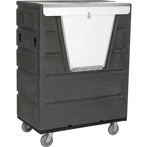 The Best Value Bulk Linen Truck is designed to be a reliable workhorse for commercial laundries and distribution companies serving hospitals, nursing homes, hotels, restaurants and other institutions. Rugged, seamless rotationally molded polyethylene (LLDPE) truck has smooth walls for easy cleaning, and thrives in punishing indoor or outdoor conditions. Convenient cutaway opening offers easy access for loading/unloading of goods, and integral hand holes in the body offer easy steering. Rolls easily on 6" non-marring rubber wheel casters (2 swivel, 2 rigid). Security Truck has folding white plastic closure panels with a padlock hasp for securely storing contents. Note: Additional body colors are available; please call for more information.