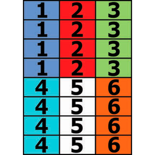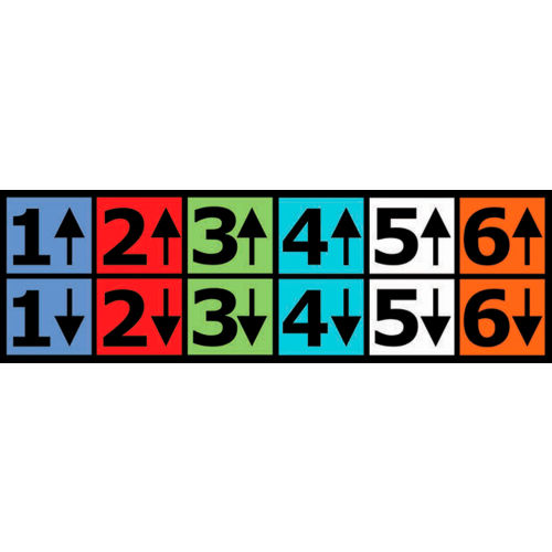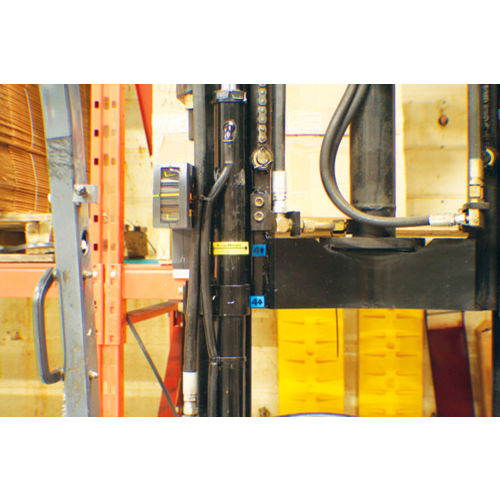 Indicator allows the Forklift Operator to quickly know the Correct Height of the Forks at various Rack Levels. The higher the lift, the harder it is to judge the correct height of the forklift forks. By matching the indicator sticker with the corresponding color marker, the correct fork height is easily obtained to enter the pallet safely. The second marker indicates the safe lift height of the pallet to be removed or added to the rack. Three types of labels are included: The Mast Indicator attaches to the forklift mast. The Mast Marker attaches to inside the mast rail for when the pallet is in the "up" position. The Rack Level Indicators are installed on the rack to notify the operator of the correct level marker to use on the mast.