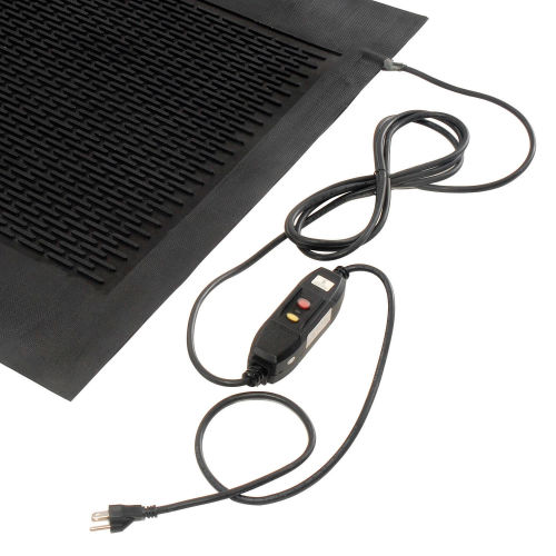 Heated Mat Melt Snow And Ice To Keep Your Entrance Clear And Safe! This outdoor heated mat is great for entrances, ramps, loading docks, hospitals, nursing homes, hotels and more! 1/2" thick entrance mat is made with reinforced butyl rubber that is UV stabilized for heavy outdoor use. 120V, 260 Watts (40 watts/sq.ft) heated mat operate for only pennies a day to offer an effective alternative to embedded systems. Electrically operated heating element is placed between non-slip rubber surfaces. Measures 28"W x 36"L. Includes 15'L power cord. Meets IEEE 515.1 standards. ETL and CETL listed.