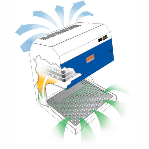 Air Science DWS Downflow Workstations / fume hoods / downdraft tables are high efficiency ductless fume hoods designed to protect the user and the environment from hazardous vapors generated on the work surface. Unrestricted front and side access facilitates applications requiring complex and intensive operator involvement, while downward airflow in the chamber protects the operator. The DWS Downflow Workstation / fume hoods product line is based on an innovative Air Science Multiplex Filtration Technology that creates a safe work environment over the widest range of applications in the industry. Includes task lighting and fan speed controller. Other sizes available. 36 and 48 wide units also available. Optional Heavy Duty Base Stand also available (Part Number CARTP524).Filters sold separately. ASTM-001 GP Plus filter for organic and solvent vapors (B2173521)ASTM-012 AMM filter for amines and ammonia vaporsASTM-013 FOR filter for formaldehyde vaporsASTM-015 ACI Plus filter for inorganic acid vaporsASTM-030 HEPA filter for powders.