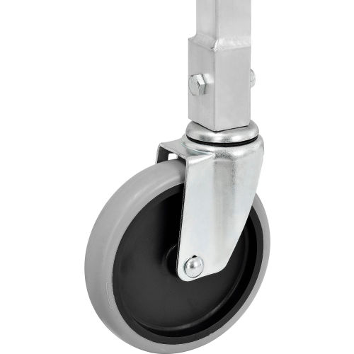 NSF Aluminum Lug Tote Box Cart 23"L x 15-1/2"W x 19"H, 1 Tote Capacity, All Welded Tote box carts make transporting bin totes easy! These tote lug carts are designed for transporting and storing anything from small parts, components to food and recyclables. Durable tote carts roll smoothly on casters. Slide runners support tote boxes and allow quick, easy access. These tote carts accept plastic tote boxes that measure 25-1/8"L x 16"W x 8-1/2"H (totes sold separately). Made with lightweight, tubular aluminum framing. Moves easily on 5"x1 stem caster with gray TPR wheel. NSF listing.