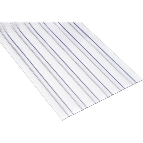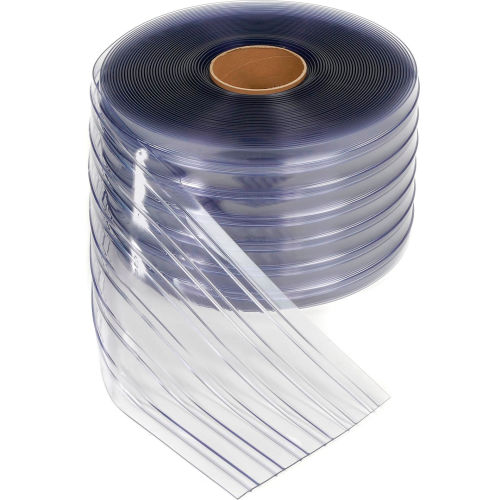 TMI PVC Strip Curtain Bulk Roll Scratch Resistant Ribbed Clear x x .110" - 000-585339 PVC Bulk Roll material is ribbed on both sides to help reduce scratches and abrasions to the strips making it ideal for heavy traffic applications. UV stabilized material retains clarity for lasting visibility and increased service life. Overlapping strips interlock for a more energy efficient enclosure. Easy to install; simply cut to length, punch hole and mount. (Hardware not included.) Fire-resistant, as well as self-extinguishing, and registered as such by the California state Fire Marshal's office.