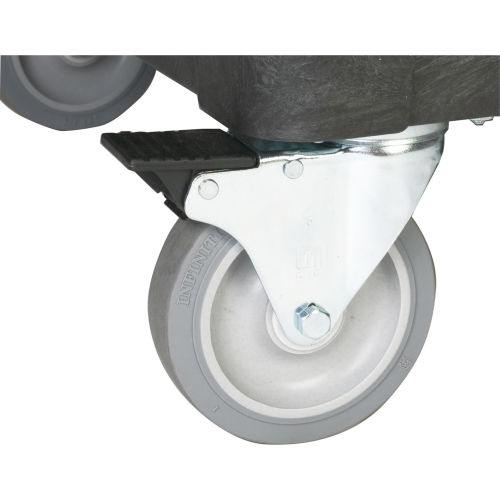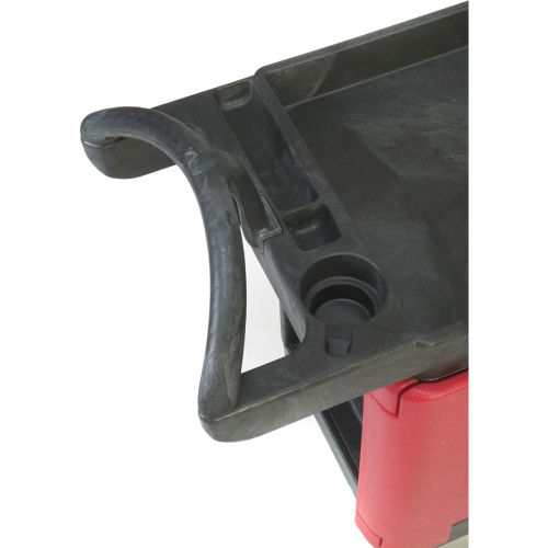Durable and lightweight structural foam will not rust, dent, chip or peel. Rounded corners to avoid marring walls. Easy rolling 5" non-marking, polyurethane casters, 2 fixed and 2 swivel with brakes. Ergonomic, easy grip handle for comfortable maneuvering includes built in tool and component storage as well as cup holder. 4-1/4" back and end stops to keep parts from rolling off work surface. Central locking system for secure storage with one turn of a key. Full extension 4-1/8"H drawers glide easily on ball bearing slides with 40 lb. capacity each. Cabinet doors swing 270 for easy access. Cabinet shelves are height adjustable with 25 lb. capacity each. 3 outlet surge protector with 15' cord included. 31"H worksurface, 38"H overall. Easy assembly.