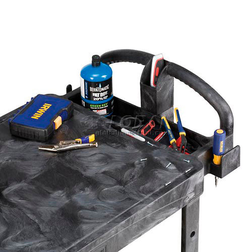 Won't rust, dent, chip or peel. Lightweight for easy maneuverability and quiet operation. No sharp edges to nick walls or furniture. Flat shelves provide a smooth work surface and allow easy loading. Compatible with Optional Refuse/Utility Bins, Rubbermaid Commercial Optional Utility Cart Refuse/Utility Bin and Rubbermaid Commercial Utility Bin (Sold Separately). Color: Black; Capacity (Weight): lb.; Caster/Glide/Wheel: Two 5" Swivel Non-Marking Casters. 1 Year Limited Warranty.