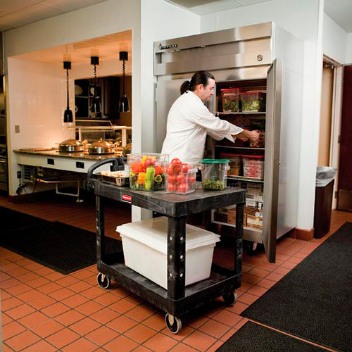 Buy Rubbermaid Plastic Utility Cart w/2 Shelves, lb. Capacity, 39"L x 17"W x 33"H, Black for $225.95 at @ Globalindustrial.com