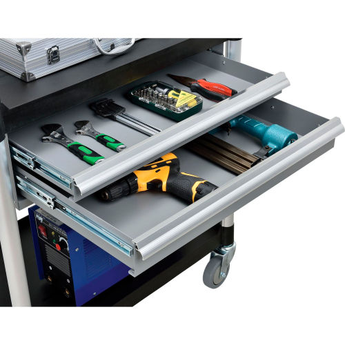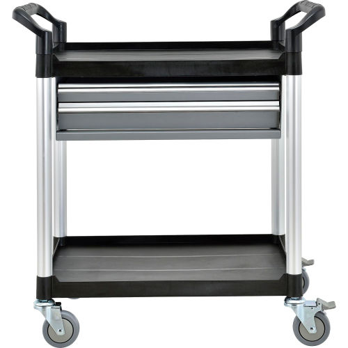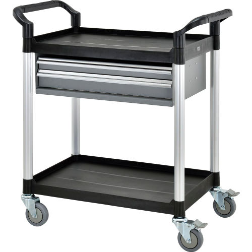 Buy Global Industrial Utility Cart, 2 Shelves, 2 Drawers, lb. Cap, 26"L x 17"W x 37"H, Black for $367.96 at @ Globalindustrial.com