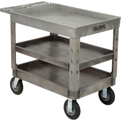 Buy Global Industrial Tray Top Utility Cart w/3 Shelves, 44"L x 25-1/2"W x 35-1/2"H, Gray for $268.76 at @ Globalindustrial.com