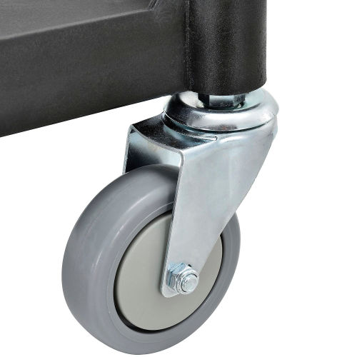 Allows you to move everything from office supplies and bulk materials to food and drinks. This warehouse cart with aluminum upright boasts double ball bearing swivel casters that are non-marking and feature total lock brakes. A mobile cart with ball bearing is easy to maneuver, and this one features a lb. capacity for light jobs. Each shelf holds up to 220 lb., and there's a 1" lip designed on the back and sides for added security. This unit makes the perfect rolling cart for the food and beverage industry, but its versatility allows it to serve a variety of purposes.