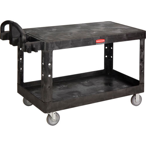 Buy Rubbermaid Plastic Flat Top Utility Cart, 2 Shelf, 54"Lx25"W, Casters, Black for $449.95 at @ Globalindustrial.com