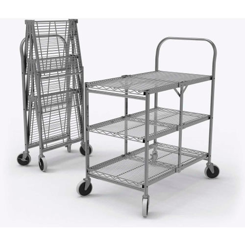 Buy Luxor Collapsible Wire Cart w/2 Shelves, lb. Capacity, 33"L x 19"W x 39"H, Silver for $369.95 at @ Globalindustrial.com