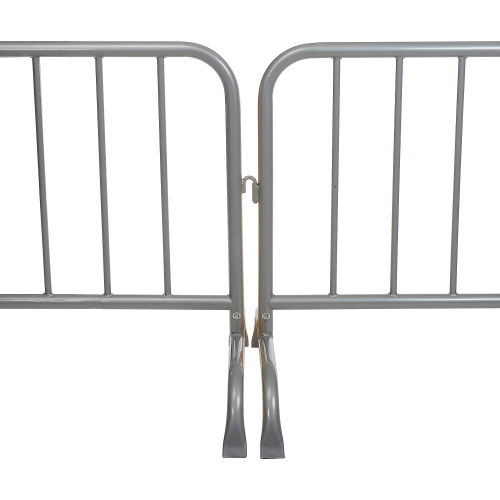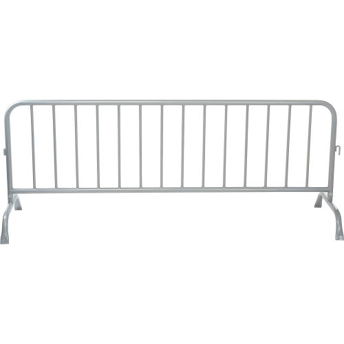 Direct pedestrians with these all-welded steel barriers. Easy to transport assembled, they also include removable feet that allow flat stacking for space efficient shipment and storage. Sections include couplers that join units in runs of any length. Measure 102'L x 40"H each with 5-3/4" spaces in between vertical bars. Constructed of 1-5/8" diameter tubular powder coated galvanized steel.