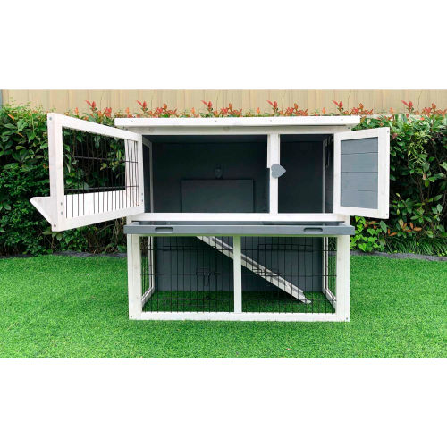 Buy Hanover Outdoor Wooden 2-Story Rabbit Hutch with Ramp, Wire Mesh Run and Waterproof Roof for $199.95 at @ Globalindustrial.com
