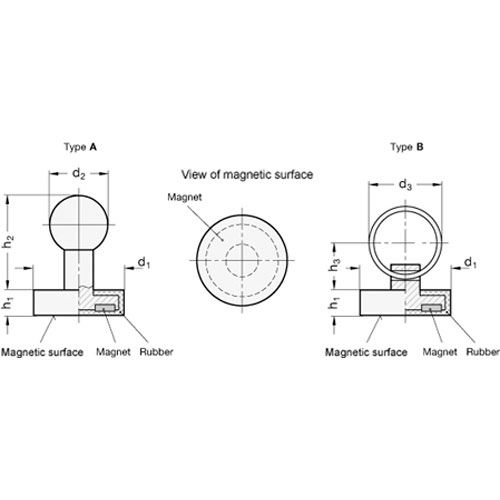 GN 51.7 magnets are a shielded magnetic assembly with a rubber jacket. They are especially suitable for applications where the surface is easily marred. Also, these magnets have an increased coefficient of friction, which creates high lateral retaining force. Temperature resistant to 175 F (80 C).