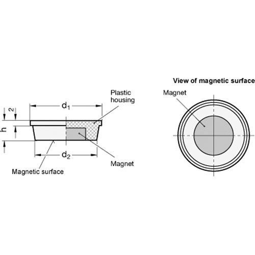 GN 53.1 magnets are a shielded magnetic assembly. They are primarily used for holding drawings and the like. The magnetic material is characterized by a high adhesive force. Temperature resistant to 175 F (80 C).