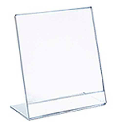 Plastic sign holder features slant back design that highlights important information. Use as a tabletop display or as a picture frame. The plastic frame is constructed of clear acrylic that allows for easy viewing of marketing information, announcements and photos. The frame's side load design allows for easy insertion of printed material. . This item must be purchased only in multiples of 10.
