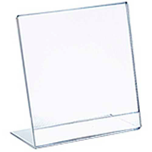 Plastic sign holder features slant back design that highlights important information. Use as a tabletop display or as a picture frame. The plastic frame is constructed of clear acrylic that allows for easy viewing of marketing information, announcements and photos. The frame's side load design allows for easy insertion of printed material. . This item must be purchased only in multiples of 10.