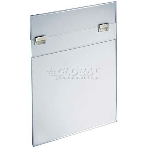 Wide High Vertical Wall Mount Poster Frame. Made from 0.100" thick clear acrylic with side load design for easy insertion of printed material. Hanging hardware included (2 wall brackets; 4 screws).