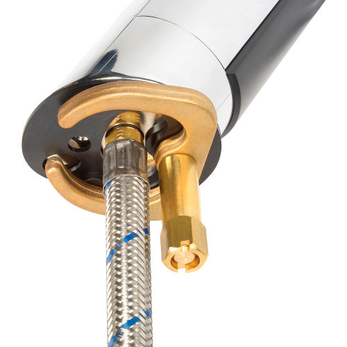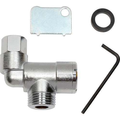 Chrome-plated, vandal resistant brass faucet delivers a flowing volume of 1.0 GPM with a max temperature of 185 F. This lead free and ADA compliant, deck mounted faucet allows hands free activation and stops once users have withdrawn from 15 cm sensor range. LED indicator provides notification when battery power is low. Includes faucet and trim plate kit with spacer to be used with 4" single hole faucets. minute time-out setting. Connection size is 3/8".