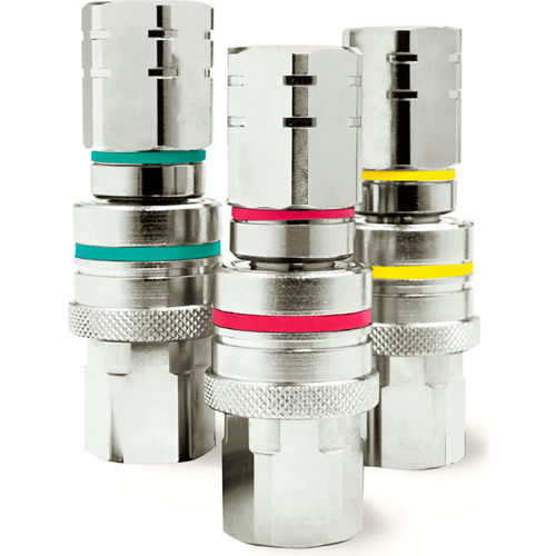 With unlimited combination possibilities, CEJN Series 567 non-drip modular couplings are adaptable to virtually all applications and system requirements. The non-drip design of the Series ensures practically zero spillage and eliminates pollution and air inclusion during connection and disconnection. The Series is available in three configurations: straight through, single shut-off and double shut-off. Series 567 is also available with color-coding and/or key coding for extra safety. Optional seal material upon request. - Pkg Qty 5.