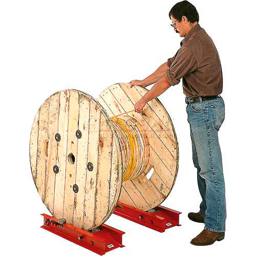 Simple one man operation saves time and effort. The most efficient method for winding or dispensing wire, cable, rope, hose and chain. Accommodates all reel diameters. Rear roller adjusts to six positions. Incline ramp permits easy loading and unloading. Constructed of 4" structural steel with heavy ball bearing rollers. Side rollers permit easier, steadier reel handling. 3000 lb. capacity, handles unlimited reel widths with flanges up to 5-1/2" thick. 9-1/4"W x 28"D overall. For use on an evenly surfaced floor. Priced per pair.