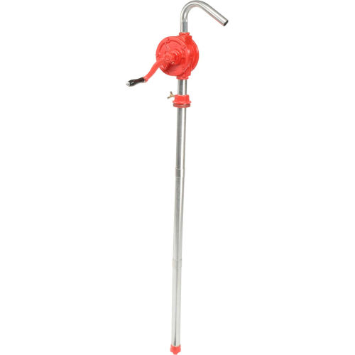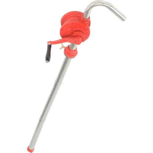 National-Spencer | Zee Line CAST IRON ROTARY DRUM PUMP Easy to operate, just turn crank handle. To use as a siphon, prime pump by turning crank handle several times: liquid automatically siphons to lower level. Used for light oil and petroleum products. Dispenses 8 oz. per revolution. Fits 15, 30 and 55 gallon drums. Cast iron body with heavy duty cast iron vanes and Buna-N seals. 3 piece steel suction pipe 1-1/4" dia. x 40"L, strainer. Includes 2" bung adapter. 180 maximum fluid temperature. Optional Drip Tray returns spills into drum, reducing waste and cleanup. Complete with hinged cover.