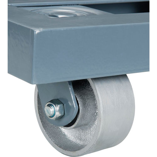 Steel Dolly with Open Deck & Steel Wheels 1600 Lb. Capacity 27 x 16 - 110431 Move machinery or heavy cases and cartons. Steel dolly has 1-1/2" x 1-1/2" x 3/16" open deck frame with durable enamel finish and lowprofile 5" deck height. Four swivel 4" casters. Click here to see our full selection of Hand Trucks & Dollies.
