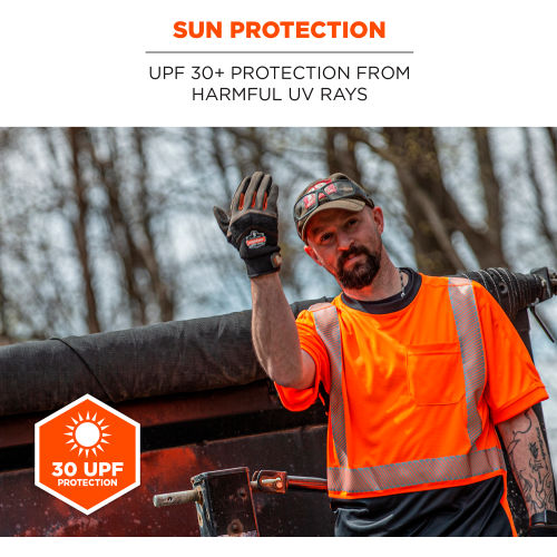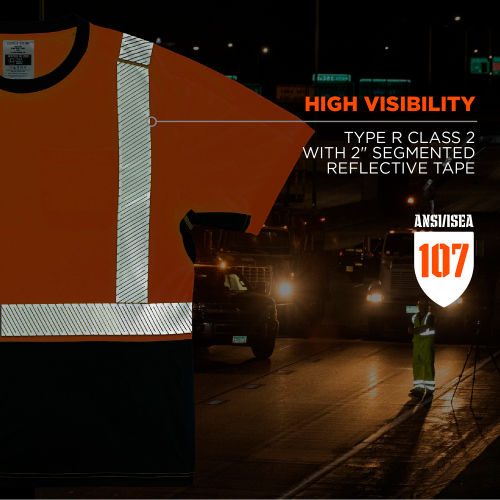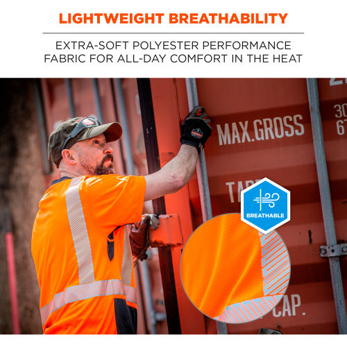 The GloWear 8283BK Lightweight Performance Hi-Vis T-Shirt is a Type R Class 2 shirt designed for enhanced visibility and breathable comfort. With an extra soft, jersey-like feel, this 100% polyester fabric is the lightest weight ANSI 107-approved fabric on the market. Great for working in the heat, this reflective safety shirt features a moisture-wicking treatment and underarm vents to keep wearers cool and dry.. It is rated to 30+ UPF for protection against the sun's harmful UV rays. The black panel across the bottom hides dirt, grit and dust to keep the shirt looking cleaner longer. Additionally, black vented underarm panels hide sweat and improve breathability. This hi vis work shirt uses segmented 2 reflective tape for enhanced visibility at night or in low-light conditions. Unlike solid reflective tape, the flexibility of segmented tape allows reflective clothing to feel more comfortable, lightweight and breathable. Features: LIGHTWEIGHT BREATHABILITY Incredibly lightweight polyester performance fabric for all-day comfort in the heat (20% lighter than GloWear 8280BK Performance Hi-Vis Shirt)HIGH VISIBILITY ANSI/ISEA 107, Type R Class 2 compliant with 2" segmented reflective tape for low-light visibilityMOISTURE-WICKING TREATMENT Keeps workers cool and dryUNDERARM VENTS For optimal airflowBLACK PANELING Hides sweat, dirt and dust for long-lasting wearSUN PROTECTION UPF 30+ protection from harmful UV raysCHEST POCKET For clipping pens or storing other small itemsMACHINE WASHABLE.