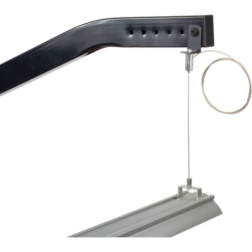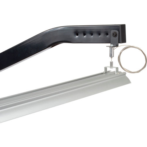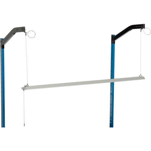 This light kit provides direct overhead lighting to brighten any work surface where additional lighting is needed. The light fixture hangs from cantilever brackets using adjustable cord plungers. The cantilever brackets are height adjustable on upright kit (sold separately) at 2" increments. The light unit is height adjustable while on brackets using depressor plungers. The reflector and base are constructed of aluminum. The cover is made of clear thermoplastic and helps protect lamps from damage. Includes two 35W 50,000 hr, non-replaceable led lights. Units are 4375 lumens 120V. Certification: UL/cUL. Upright kit required.