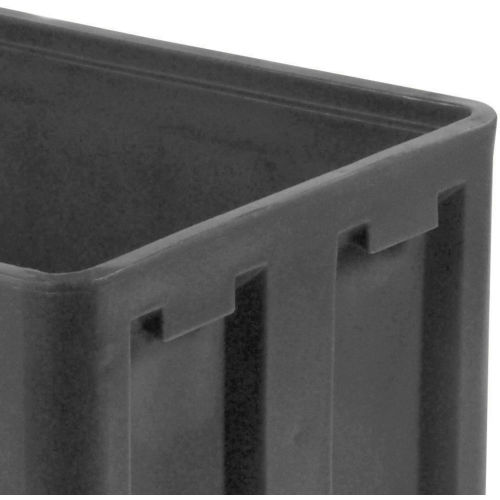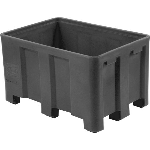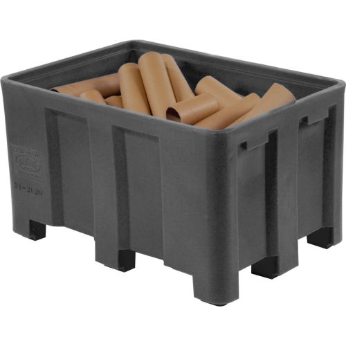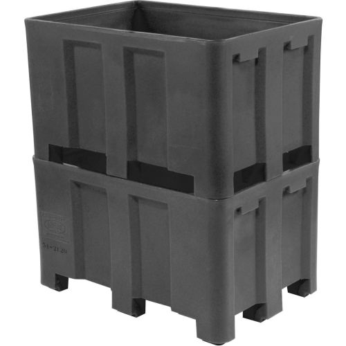 BLACK RECYCLED PLASTIC STACKABLE CONTAINERS 1,250 Lb. Capacity Double Wall Skid Container 2-Way Fork Access Recycled plastic bulk containers are economically priced and environmentally friendly. Made of 100% black recycled plastic. Stacking bulk containers are ideal for manufacturing, storage and over the road operation. Allows fork lift entry for transport. Notched base provides positive stacking. Stacks up to 3 high.