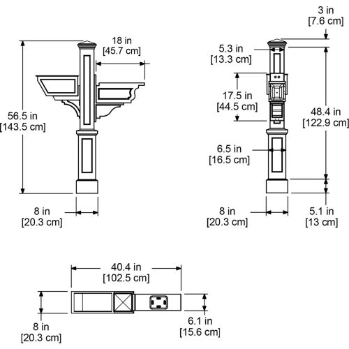 Timeless Style Infused in History...These classic lines were created with impeccable style and craftsmanship for lasting appeal. Features: Unique New England styled product offering the timeless charm of the East Coast, installs easily over a standard 4x4 wood postMayne plastic mail posts are made from high quality 100% polyethylene with built in UV inhibitors for long lasting protection from the elementsIncludes decorative post, mailbox support arm with built-in paper holder slot, and planterProduct ships in 2 boxes (standard post MP5802BK / arm MP5808BK)Medium mailbox recommended, minimum 6 1/2 inch width. Best suited for mailboxes weighing less than 12lbsNote: 4x4 wood post, mailbox, and mailbox mounting hardware NOT included with any Mayne mail posts15 Year Warranty Residential Application, 5 Year Warranty Commercial ApplicationInset Panel Dimensions (Paper Holder) - 10" x 3.5" Paper Holder Inside Dimensions: 12" x 5.5" x 4.5"Optional Mayne No-Dig Ground Screw availableOptional Mayne Solar Cap Add-On available in white or blackMade in the USA.