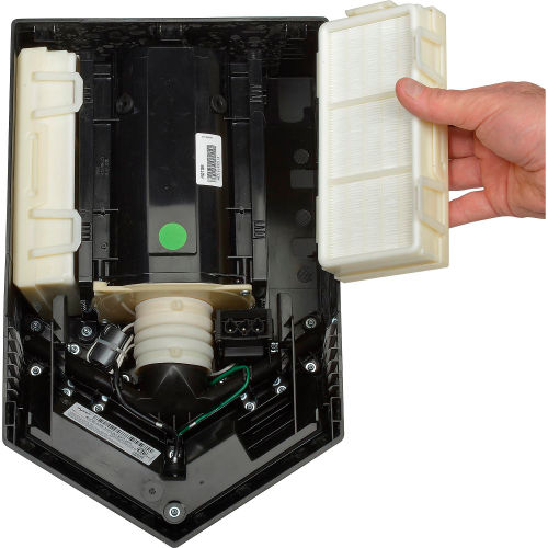 The new Dyson Airblade V hand dryer incorporates a reprogrammed 1000W digital motor and precision air apertures to make it 30% quieter than its predecessor when measuring loudness. Protruding just four inches from the wall, it complies with ADA guidelines without additional recessing costs. The Dyson Airblade V hand dryer uses touch-free operation and HEPA filtered air to dry hands hygienically in 12 seconds. Because of its reprogrammed motor, the new Dyson Airblade V dryer produces just 2.4g of CO2 per dry and costs $31 to operate per year. Warranty: 5 year parts, 5 year limited labor. Overall dimensions: 9-1/4"W x 4"D x 15-1/2"H.