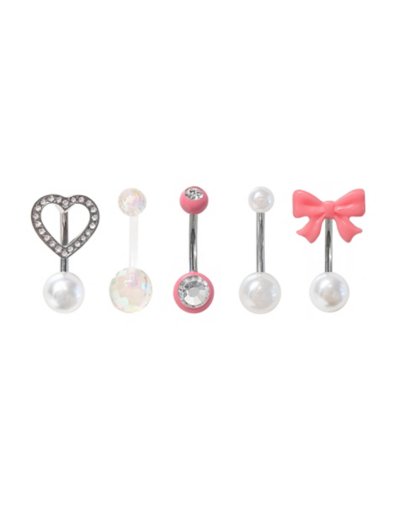 Buy Multi-Pack Pink Bow and Heart Belly Rings 5 Pack - Gauge for $19.99 at @  Spencersonline.com