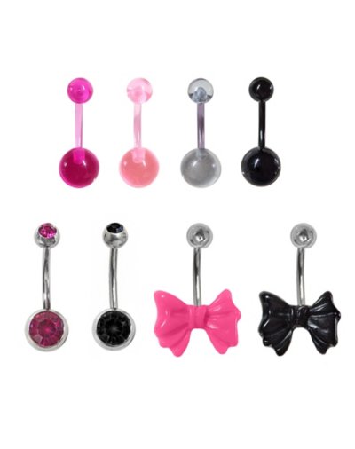 Buy Multi-Pack Black and Pink Bow Belly Rings 8 Pack - Gauge for $24.99 at @ Spencersonline.com