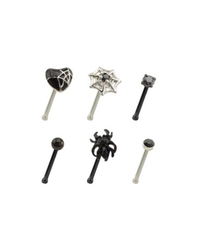 Buy Multi-Pack CZ Black and Silvertone Heart and Spider Web Pin Nose Rings for $19.99 at @ Spencersonline.com