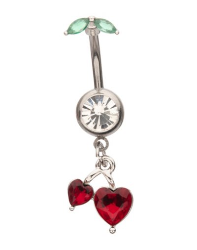 Buy CZ Cherry Heart Dangle Belly Ring - Gauge for $19.99 at @ Spencersonline.com