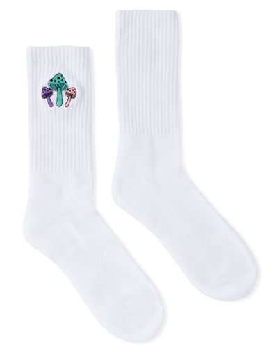 Add some trippy vibes to your sock collection with these Mushrooms Icon Athletic Crew Socks. These awesome crew socks are the perfect way to show off your psychedelic personality and will look great at any party. Exclusively at Spencer's Material: Polyester Care: Machine wash Imported.