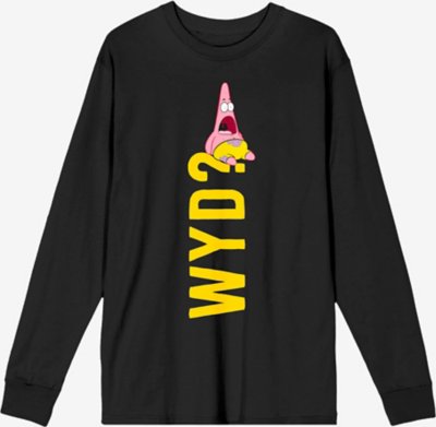 Constantly rewatching SpongeBob SquarePants? Rep your favorite TV series and embrace your inner Goofy Goober when you add this officially licensed WYD Patrick T Shirt to your wardrobe. Suit up in this stylish long-sleeve and make it clear you're the ultimate fan! Officially licensed Crewneck Long sleeves Material: Cotton Care: Machine wash; tumble dry low Imported This tee is Unisex Sizing only For a fitted look, order one size smaller than your normal size Note: This item is print to order and may have a 1 to 2 day extra processing time.