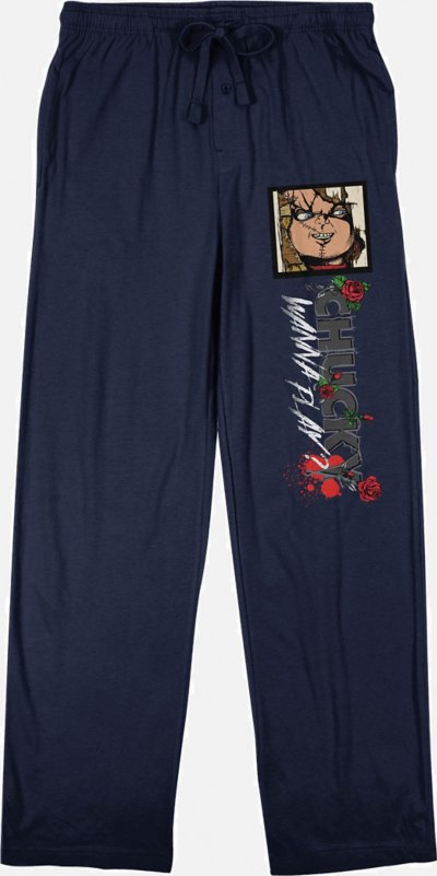 Rest and relax in comfort and style all day long with these Wanna Play Lounge Pants. These stylish pants will have any fan of Chucky feeling comfortable and showing their love anywhere they go. Officially licensed Elastic waistband Front pockets Drawstring closure Material: Polyester Care: Machine wash Imported.