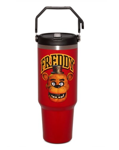 Stay hydrated in style with this officially licensed Five Nights at Freddy's Freddy Fazbear Cup with Handle! Complete with a scary-chic Freddy Fazbear decal, a whopping 40-ounce capacity, and a temperature-sustaining design, this cup is perfect for enjoying your favorite beverages on the go. Officially licensed Includes: Cup Straw Lid Dimensions: 10.8" H x 4.6" W x 4.5" D Material: Stainless steel, polypropylene, silicone Capacity: oz. Screw lid closure Care: Hand wash Imported.