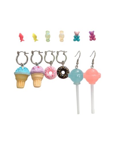 Multi Pack Ice Cream Donut Lollipop Hoop Dangle and Stud Earrings - 6