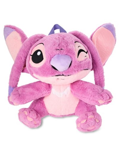 Carry your valuables in this pretty pink Angel mini backpack! This official Lilo & Stitch plush mini backpack features adjustable straps, a back zipper compartment, and a huggable Angel design. Officially licensed Adjustable straps Zipper closure Dimensions: 14" H x 12" W x 9" D Material: Polyester Care: Spot clean Imported.