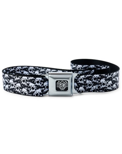 Buy Black and White Skulls Seatbelt Belt for $24.99 at @ Spencersonline.com