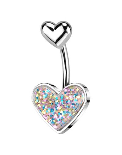 CZ Titanium Glitter Heart Belly Ring - Gauge