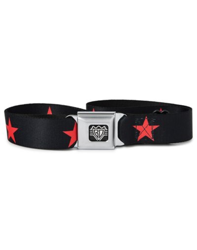Buckle up in style with this Red Stars Seatbelt Belt! This stylish seatbelt-style belt is the perfect gift for anyone trying to add rock n' roll flair to their outfit. Adjustable Length: 24" to 42" Material: Metal buckle and polyester webbing Clip closure Care: Spot clean Imported.