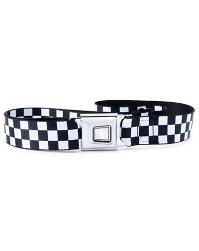Checkers make every outfit look better. It's a fact. Add this black and white checkered seatbelt-style belt to your wardrobe to boost your look and your pants. Officially licensed Adjustable Length: 24" to 42" Material: Metal buckle and polyester webbing Clip closure Care: Spot clean Imported.