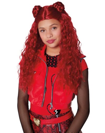 Complete your Descendants: The Rise of Red costume with this kids' Red wig! You'll look just like the daughter of the Queen of Hearts in this bright red wig with long waves and braided buns. Officially licensed Material: Polyester, synthetic fiber Care: Hand wash with cool water and mild shampoo; air dry Imported Note: Costume sold separately.