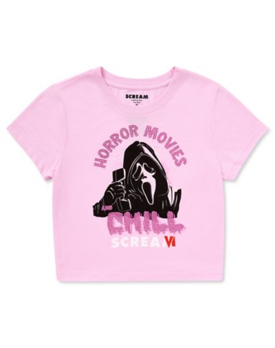 Unmask killer vibes in this officially licensedGhost Face Horror Movies and Chill Baby T Shirt. This baby pink baby tee is perfect for horror fans! Officially licensed Crewneck Short sleeves Material: Cotton, spandex Care: Machine wash; tumble dry low Imported Ghost Face is a registered trademark of Fun World Div., Easter Unlimited Inc. Ghost Face protected under worldwide copyright registration and is the exclusive property of Fun World Div., Easter Unlimited Inc. All Rights Reserved.
