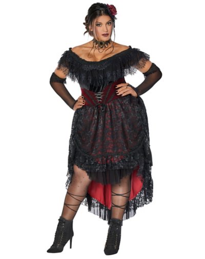 You'll be on the hunt for a lot more than just candy this Halloween once you're wearing this Victorian Vampiress costume from our Signature Collection. This high-quality costume includes everything you need to embody any devious vampiress of the Victorian era. The luxurious black and velvet dress is a stylish yet spooky look perfect for any Halloween celebration and since its from our Signature Collection you can wear it over and over again to impress everywhere you go! Exclusively at Spirit Includes: Dress Headband Choker Gloves Waist cincher Tights Scoop neck Short scalloped-lace sleeves Pullover style Hi-lo hemline Material: Polyester Care: Spot clean Imported Note: Shoes not included.