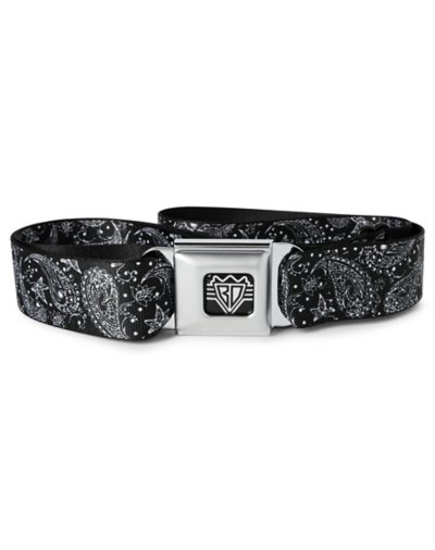 Buy Black and White Paisley Seatbelt Belt for $24.99 at @ Spencersonline.com