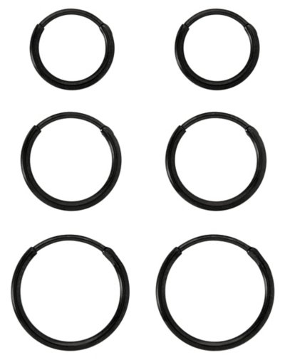 Multi-Pack Black Titanium Hoop Earrings - 3 Pair